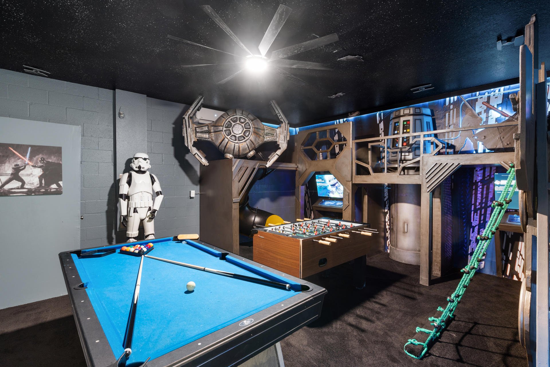 - Star Wars Themed Game Room including a Foosball Table, Pool Table, and Arcade Games