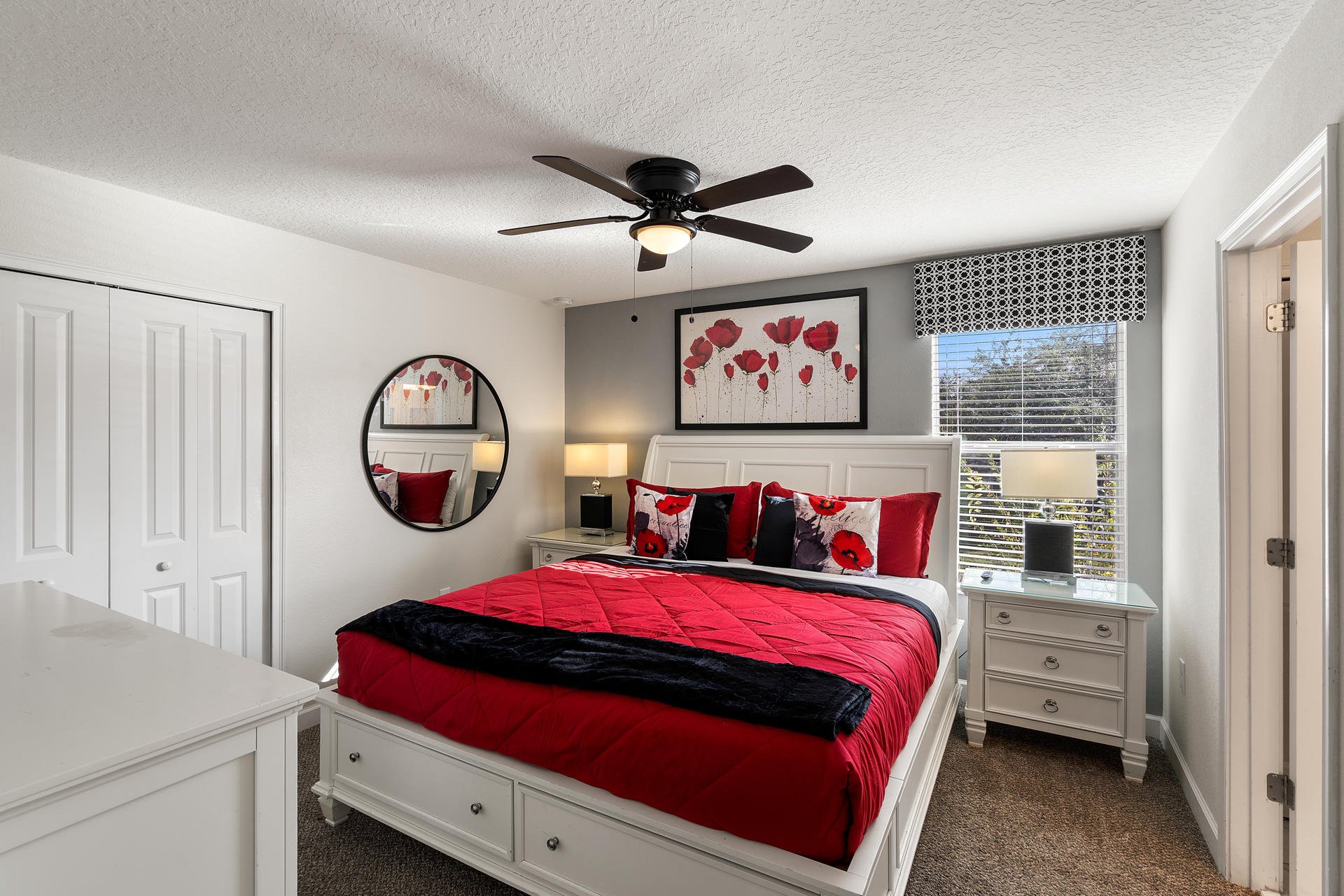 BEDROOMS (Second Floor) - Bedroom 3 - One King Bed / Shared Bathroom / 50" Roku TV