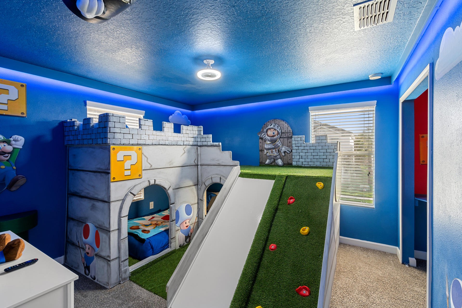 - Bedroom 4 - One Twin Bed over One Twin Bunk Bed, One Twin Bed / Mario Theme / 43" Roku TV + 32" Roku TV with Gaming Console
