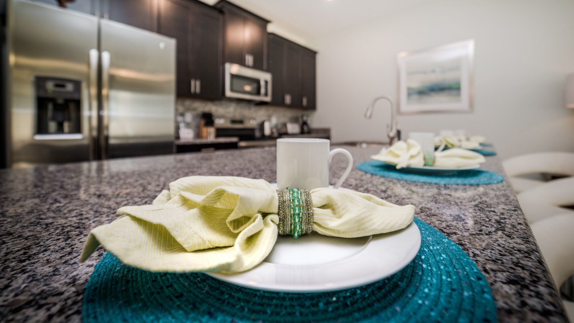 - Fully equipped Kitchen with seating for 8 at the dining table, and 4 spots at the breakfast counter