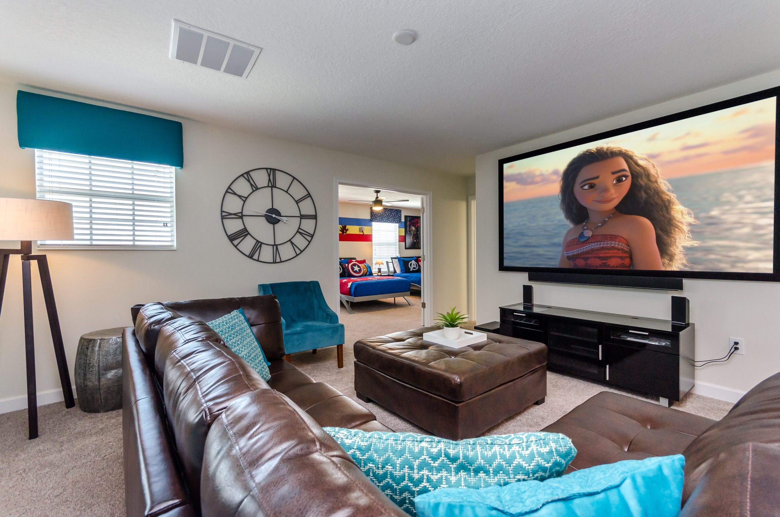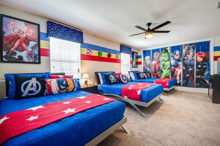 Out of the 7 bedrooms you'll find upstairs, 3 of them are dedicated just for the little ones! They'll get to sleep and play in an Avengers themed bedroom offering 3 full size beds, a Minions themed bedroom with a full and twin size bed, AND a Disney themed bedroom also with a full and twin size bed! These fun and exciting bedrooms are sure to make their Orlando vacation one to remember!
