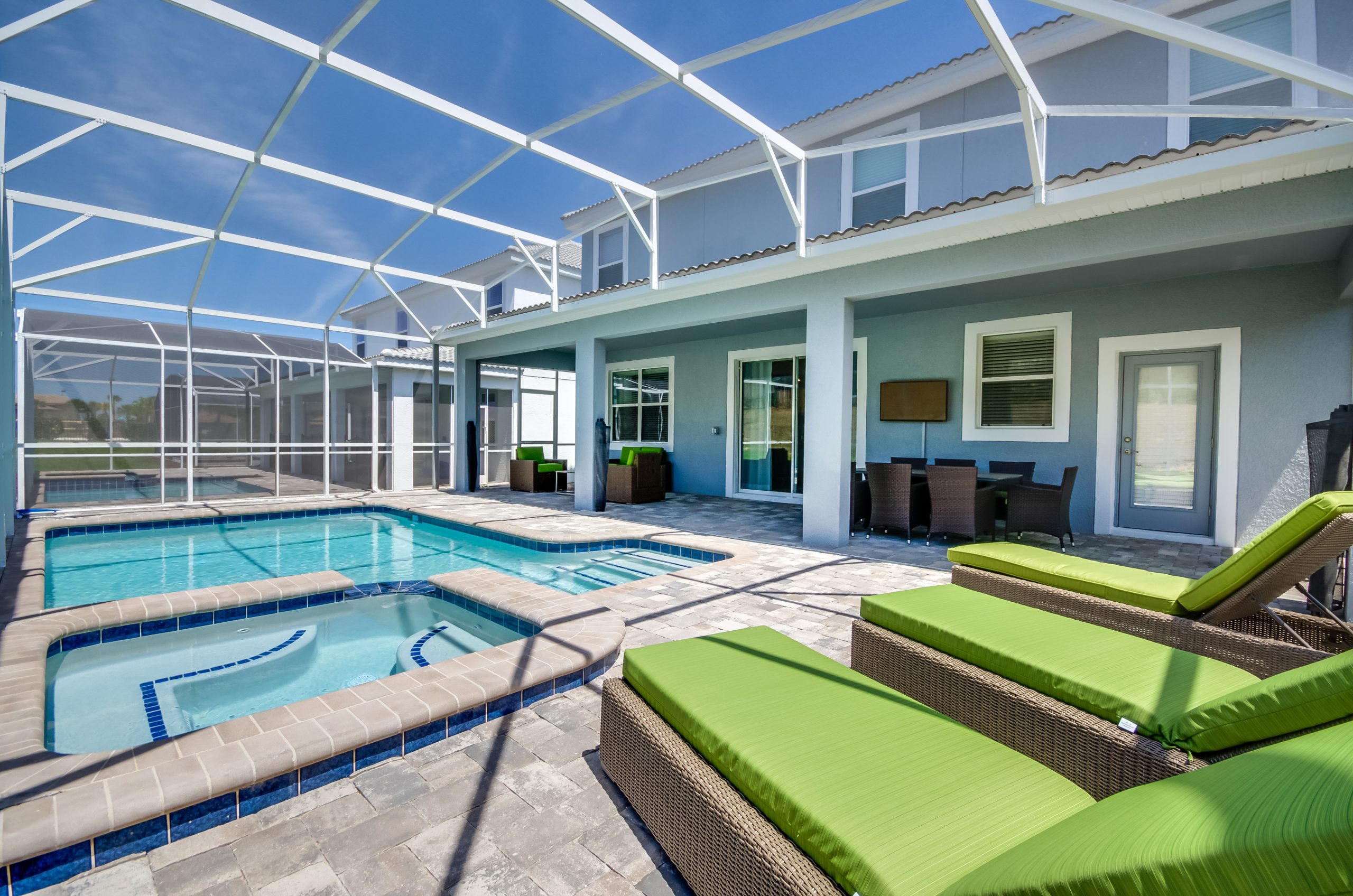 Enjoy your sunny Florida vacation in the ChampionsGate resort with your own private pool, with covered lanai. Soak up the Florida sun while relaxing on the comfortable chaise lounge chairs AND enjoy lunch and evening meals at the outdoor dining area!