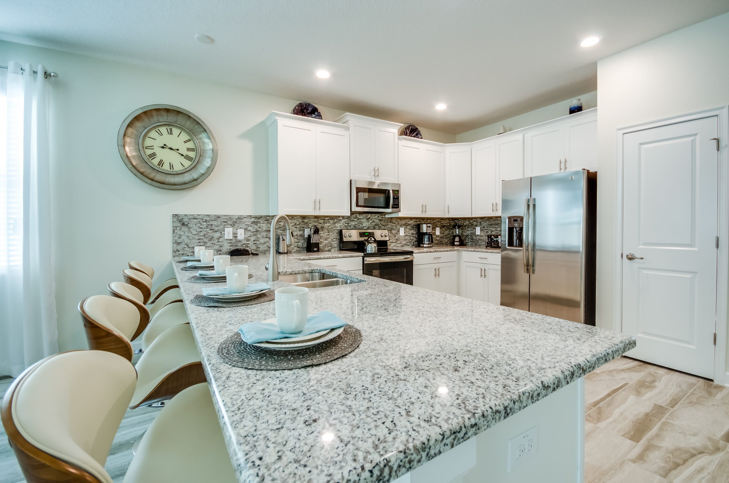 The dining room and breakfast bar offer plenty of seating for the whole family to enjoy those delicious home cooked meals in your home away from home!