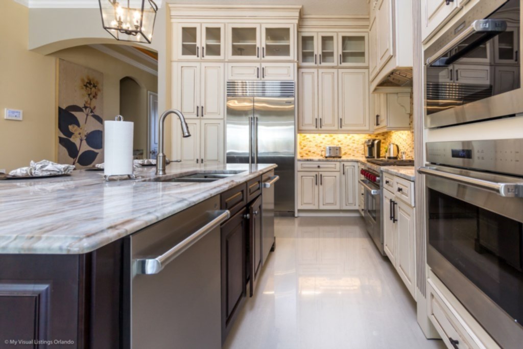 Refrigerator/freezer, oven, microwave, dishwasher, coffee maker, toaster, wine cooler