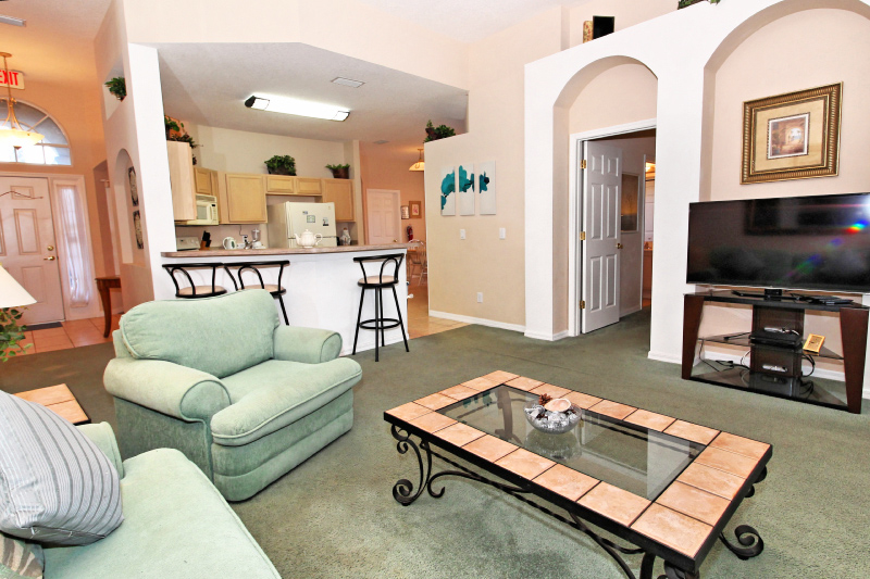 The home’s sleeping accommodation includes 1 king bedroom with king sized bed, 1 queen bedroom with queen bed and 2 twin beds with twin beds each. The interior features sitting area furnished with comfy sofas and a TV with DVD and cable connection. Inside the full-equipped kitchen, breakfast table with 4 seats and just off is an upgraded dining area with 6 seats.