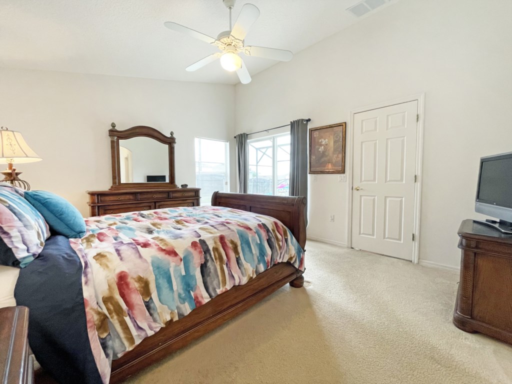 The master bedroom is located at the rear of the home and also has access to the pool area. There is an ensuite bathroom featuring double sinks, bath tub and separate shower, as well as large walk-in closet space.