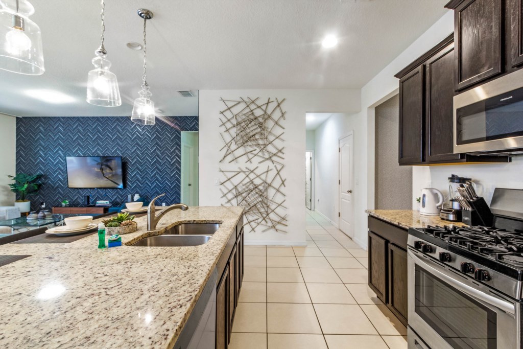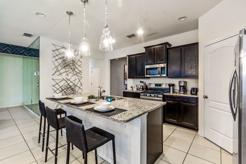 • Fully Equipped Kitchen with Granite Countertops and Stainless Steel Appliances