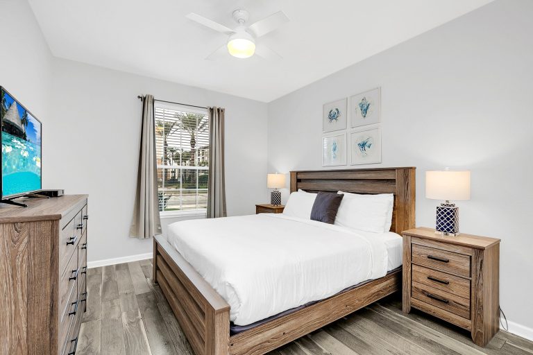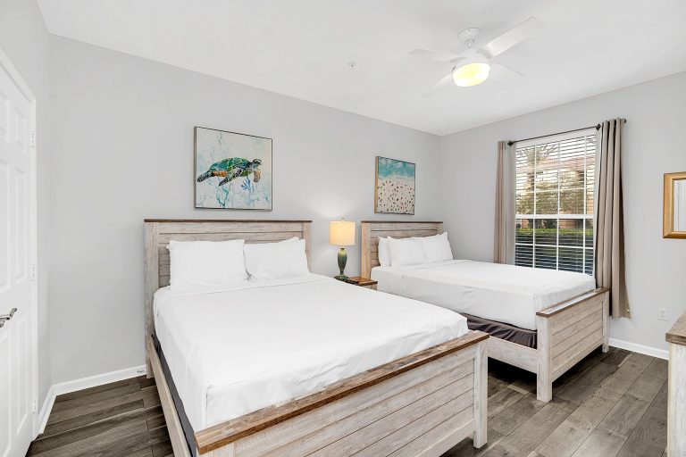 Luxurious Accommodations: Offers spacious 2- and 3-bedroom condos and townhomes (up to 2,300 square feet) with full kitchens, washers/dryers, and private balconies or patios, many with views of Lake Cay or Orlando’s skyline. The units are designed for comfort and convenience, ideal for families or groups.
