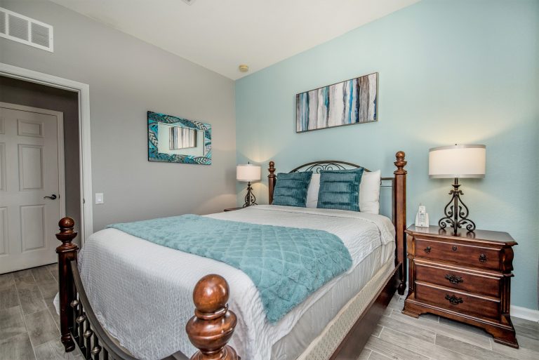 • Luxurious Accommodations: Offers spacious 2- and 3-bedroom condos and townhomes (up to 2,300 square feet) with full kitchens, washers/dryers, and private balconies or patios, many with views of Lake Cay or Orlando’s skyline. The units are designed for comfort and convenience, ideal for families or groups.