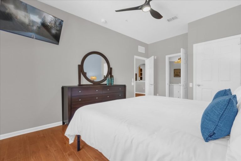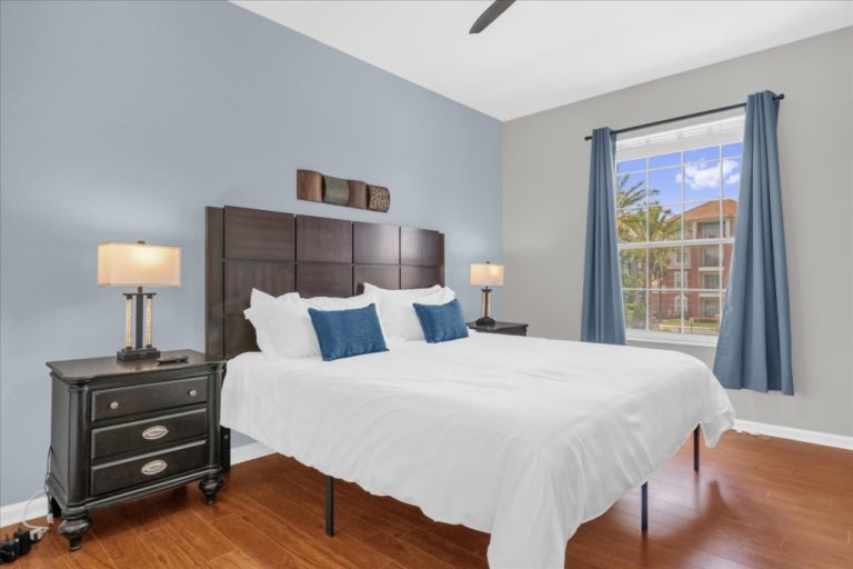 Luxurious Accommodations: Offers spacious 2- and 3-bedroom condos and townhomes (up to 2,300 square feet) with full kitchens, washers/dryers, and private balconies or patios, many with views of Lake Cay or Orlando’s skyline. The units are designed for comfort and convenience, ideal for families or groups.