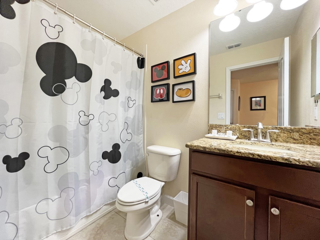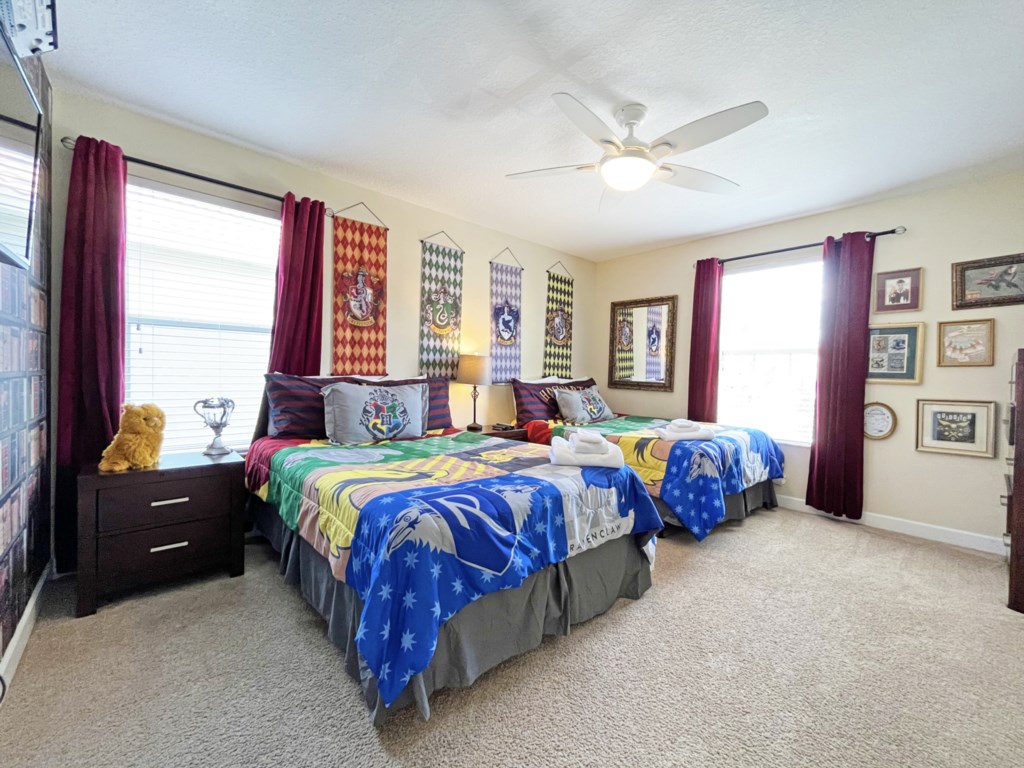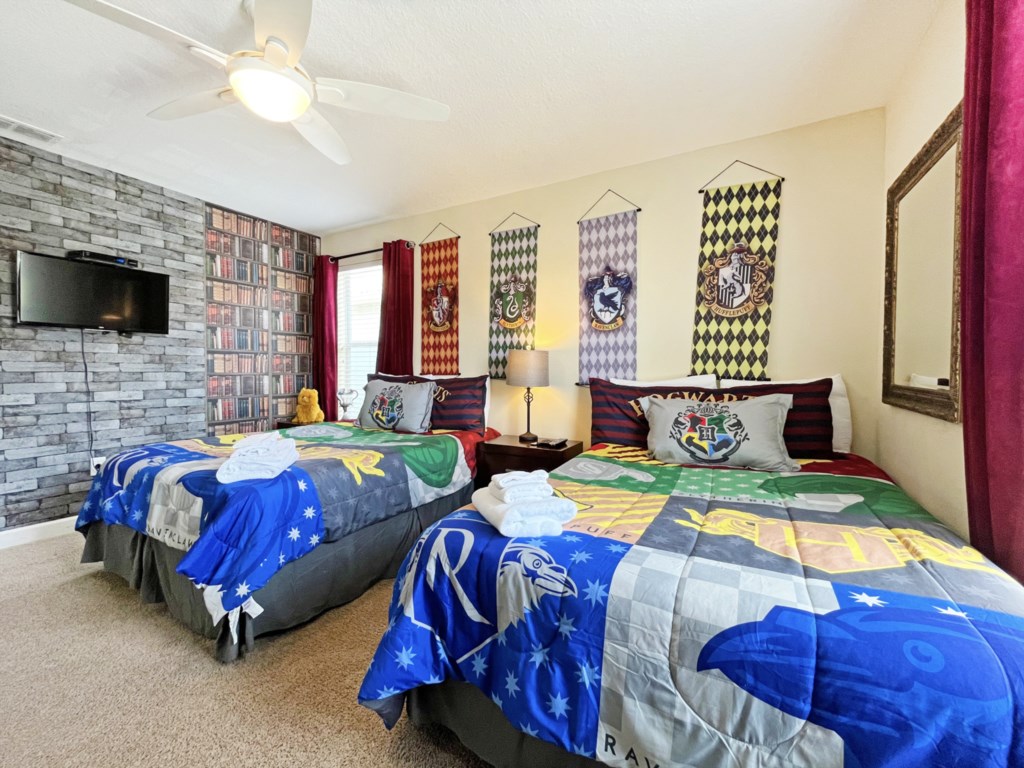 The second master bedroom is located upstairs, with king size bed and large ensuite. Also upstairs are two twin room that the children will love – one themed with Mickey Mouse, the other with Harry Potter. Every bedroom has its own television, ceiling fan, plus access to its own bathroom.