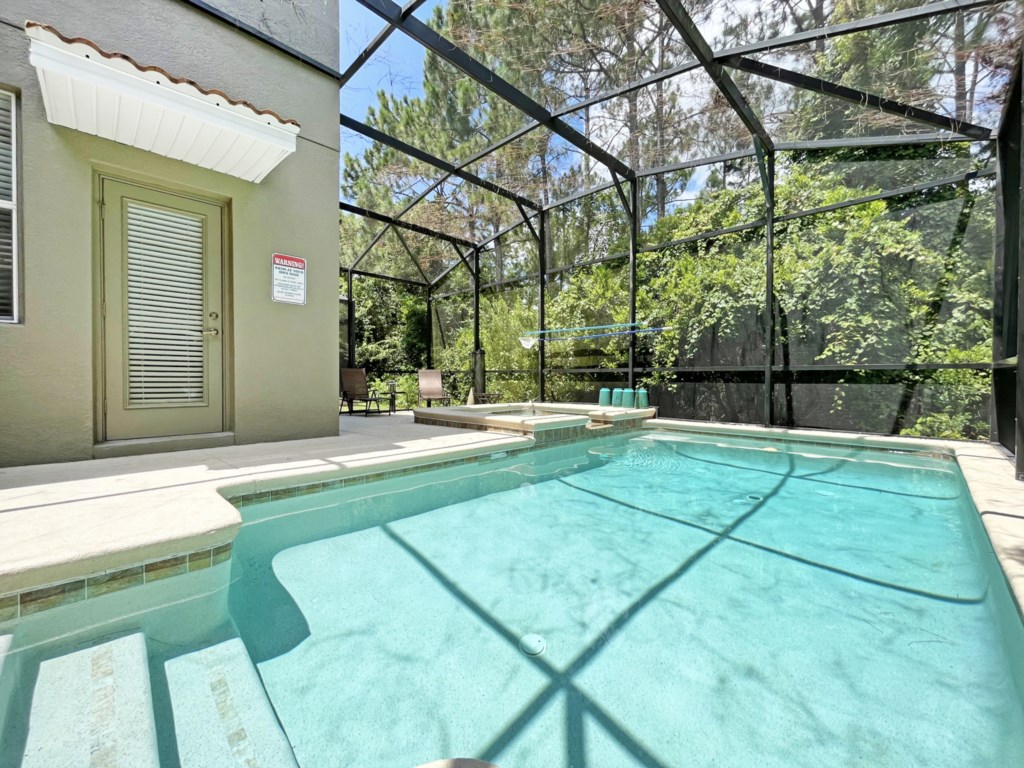 A bright and contemporary resort home with private outdoor pool deck overlooking conservation, facing west. Offering themed bedrooms for the kids and hot tub for the adults plus access to all of the premium resort amenities, the home is sure to be a highlight of your vacation.