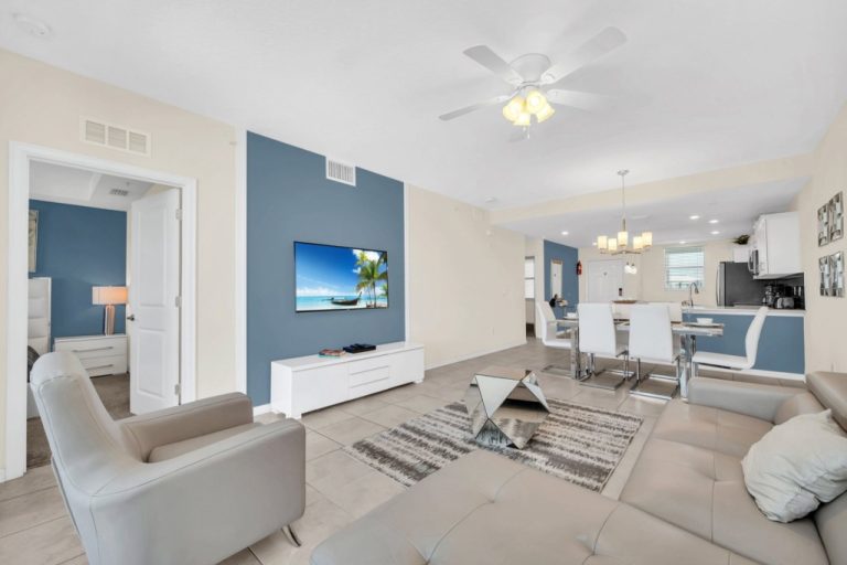 Charming Townhomes in The Cove: Select a 4 or 5 Bed two-story townhome, spanning 1,800 – 2,200 square feet, complete with patio and private splash pool fully enclosed for your privacy. These gems blend neighborhood warmth with vacation flair, offering lanais for al fresco breakfasts and easy access to the resort’s pulse.