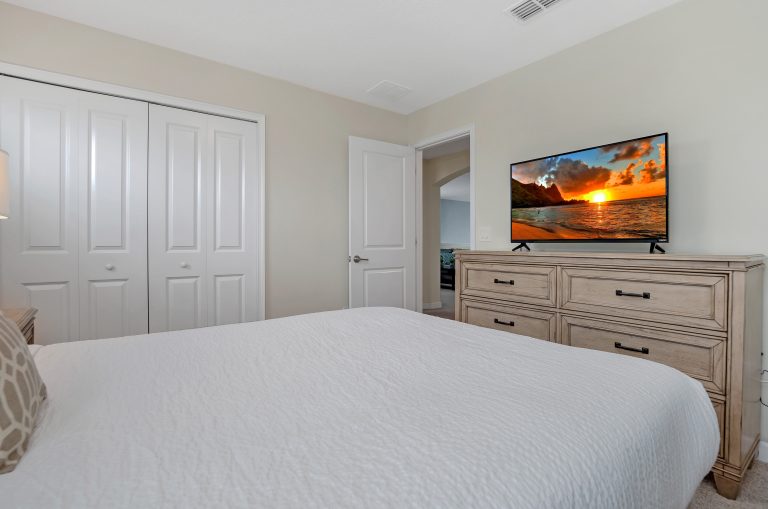 Last, but certainly not least, take note of Bedroom #5, which showcases hotel sleekness with a homey appeal. In addition, you will enjoy 1 queen size bed, two wooden night tables, a matching dresser, and plenty of room to unpack and unwind.