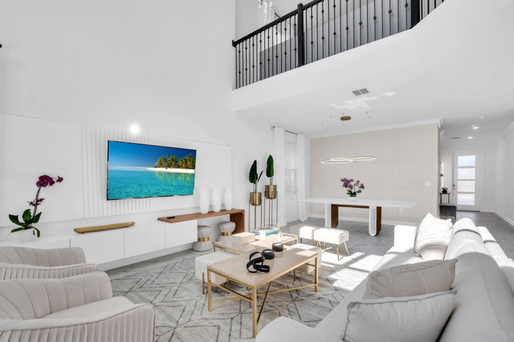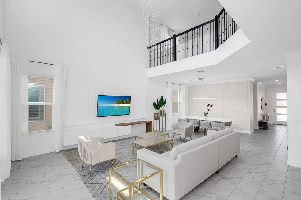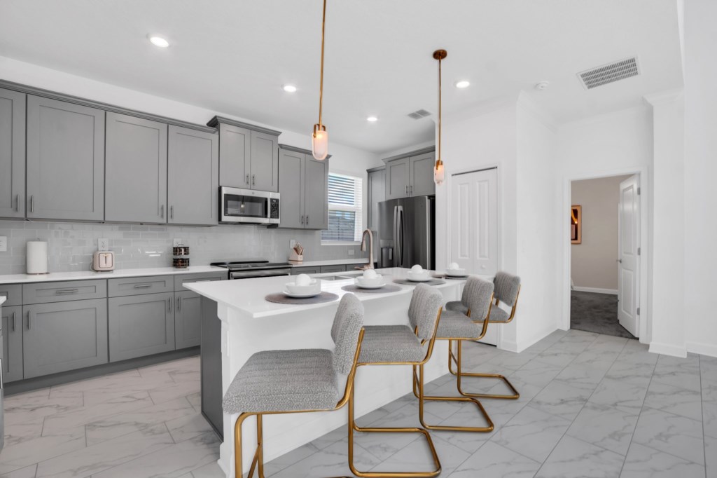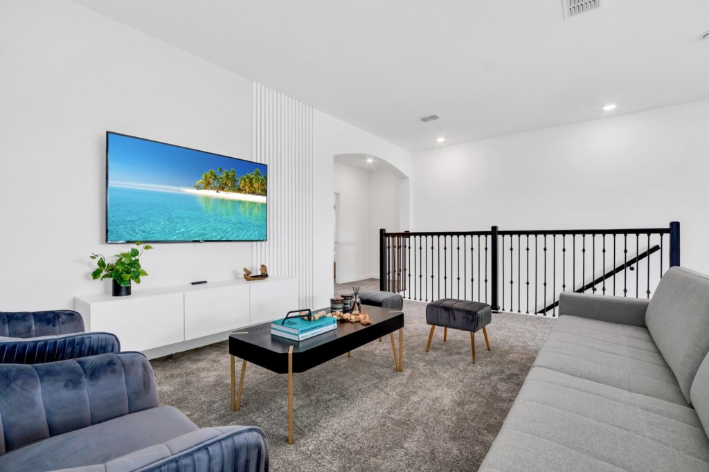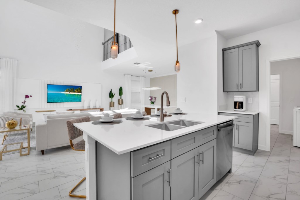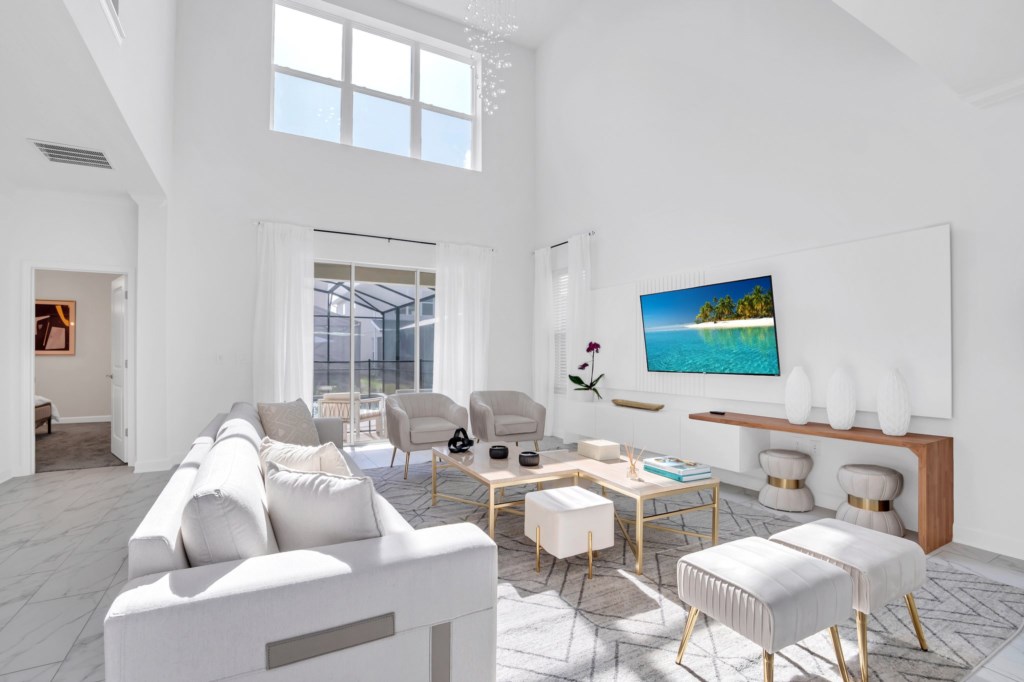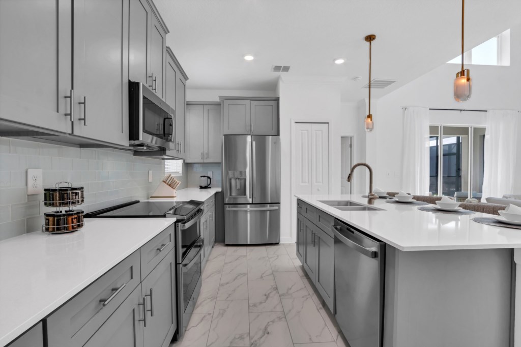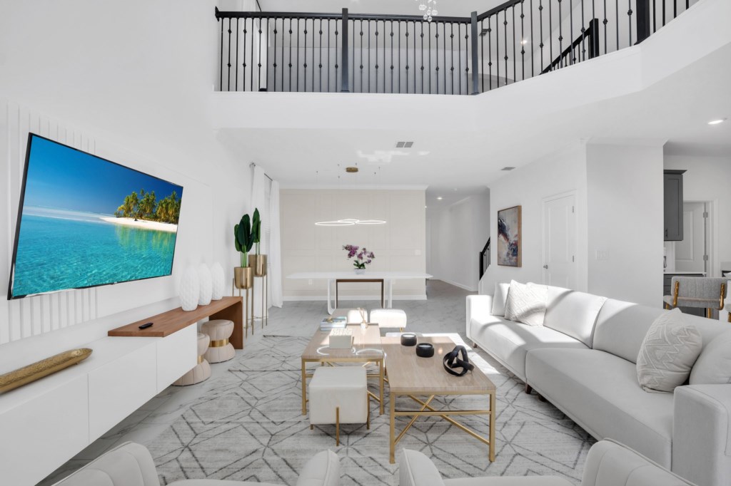 The open concept floor plan allows everyone to be together, whether you are hanging out watching your favorite show on one of the 55-inch flat screens or cooking dinner.