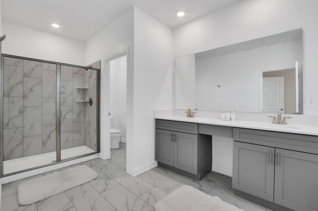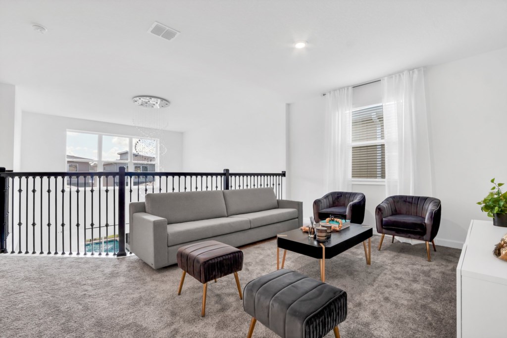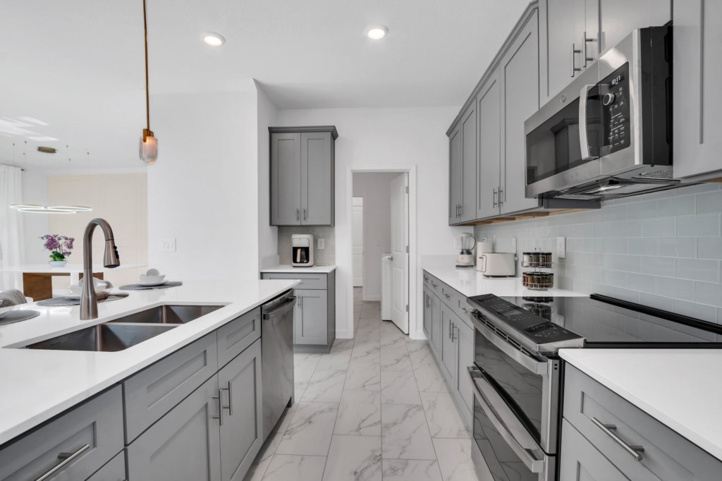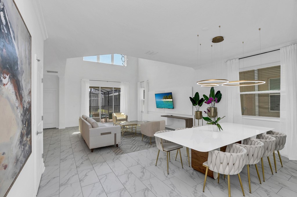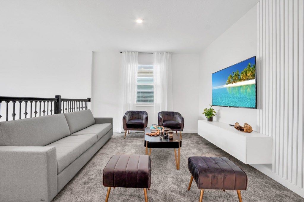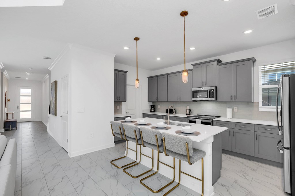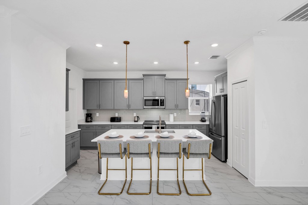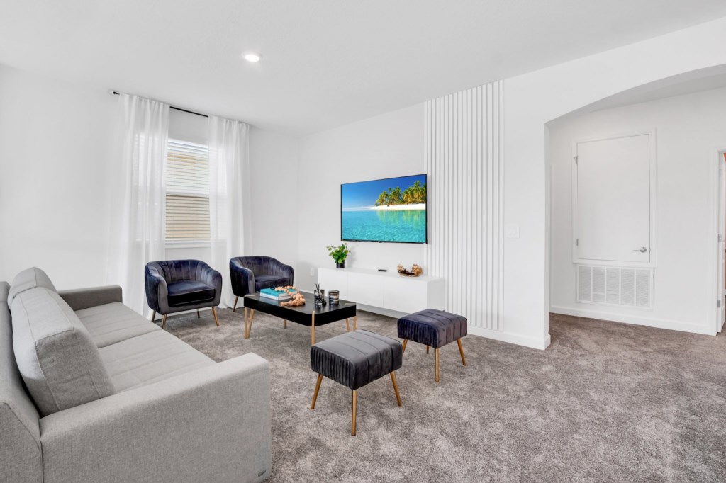 The open concept floor plan allows everyone to be together, whether you are hanging out watching your favorite show on one of the 55-inch flat screens or cooking dinner.