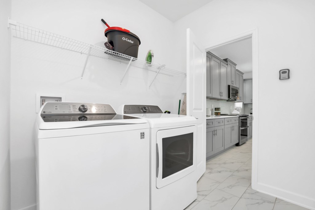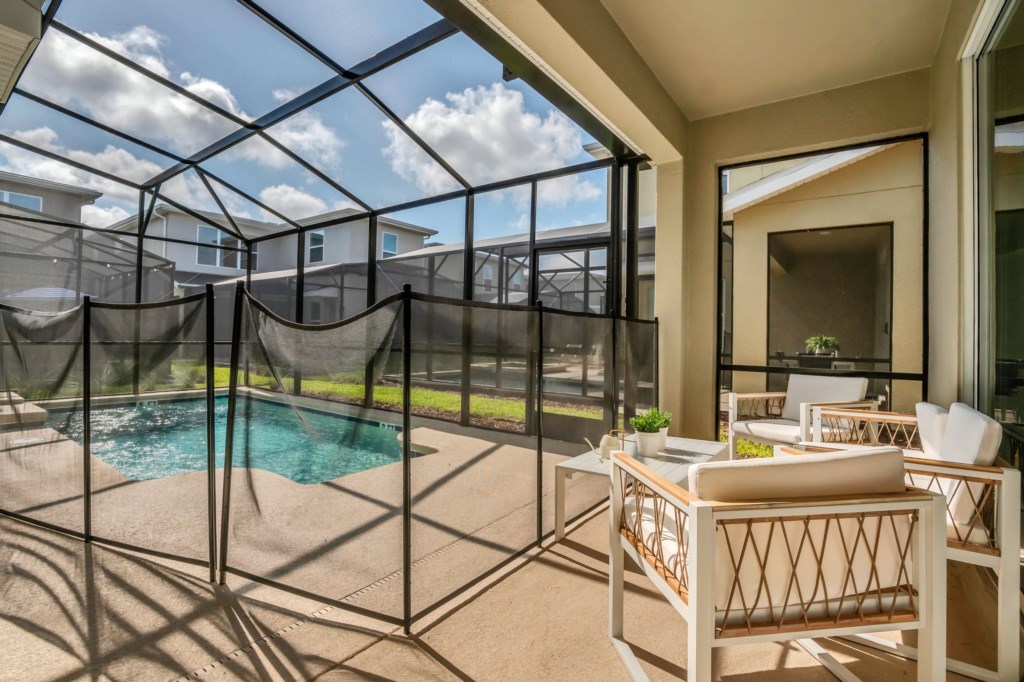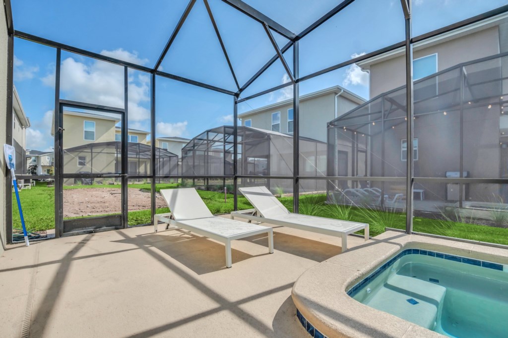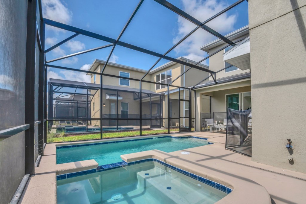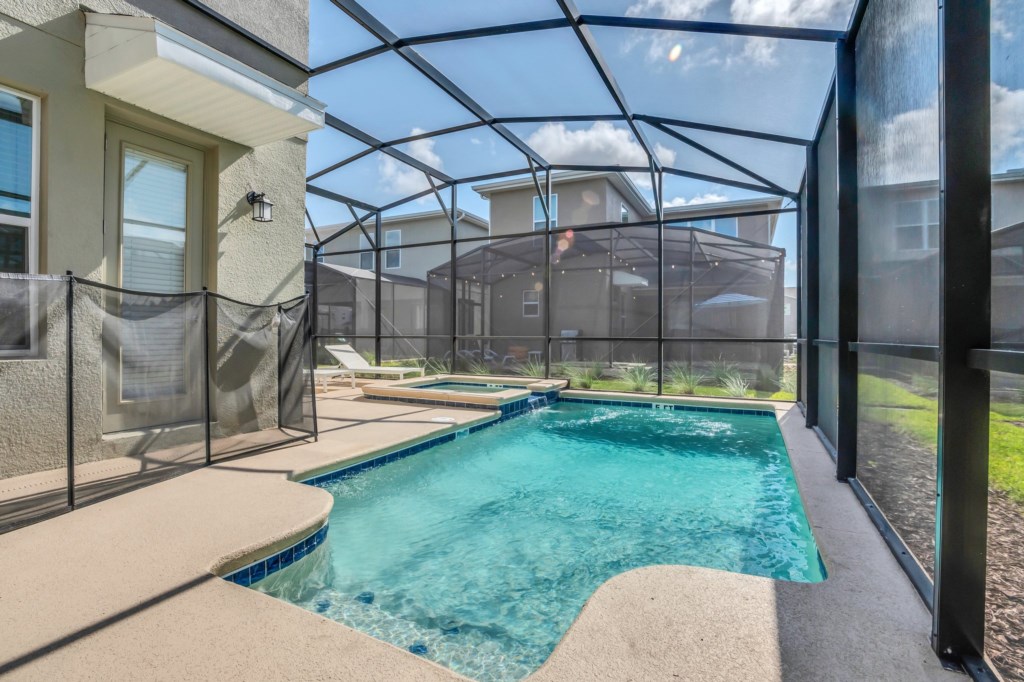 After a long day in the parks or other Central Florida attractions, you'll love your very own pool and spa, screened lanai for privacy, complete with chaise loungers and a dining table; and enjoy the Florida sun and relax. Wireless internet is available throughout the house and there is a full-size washer and dryer.