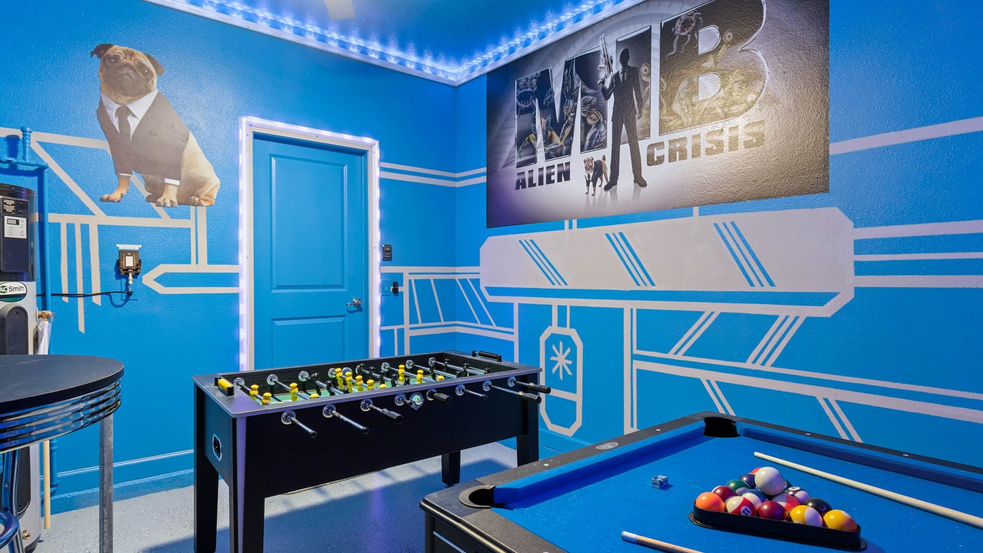 - Themed Games Room including Pool Table, Foosball, and Arcade Game