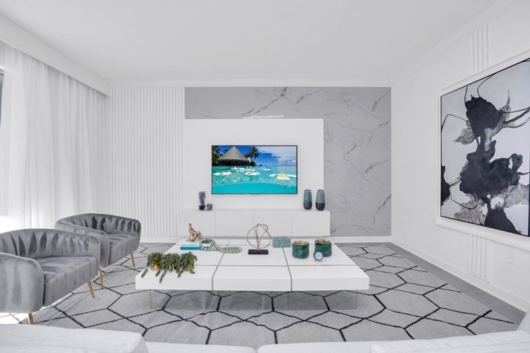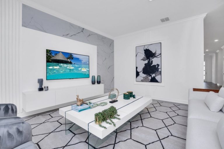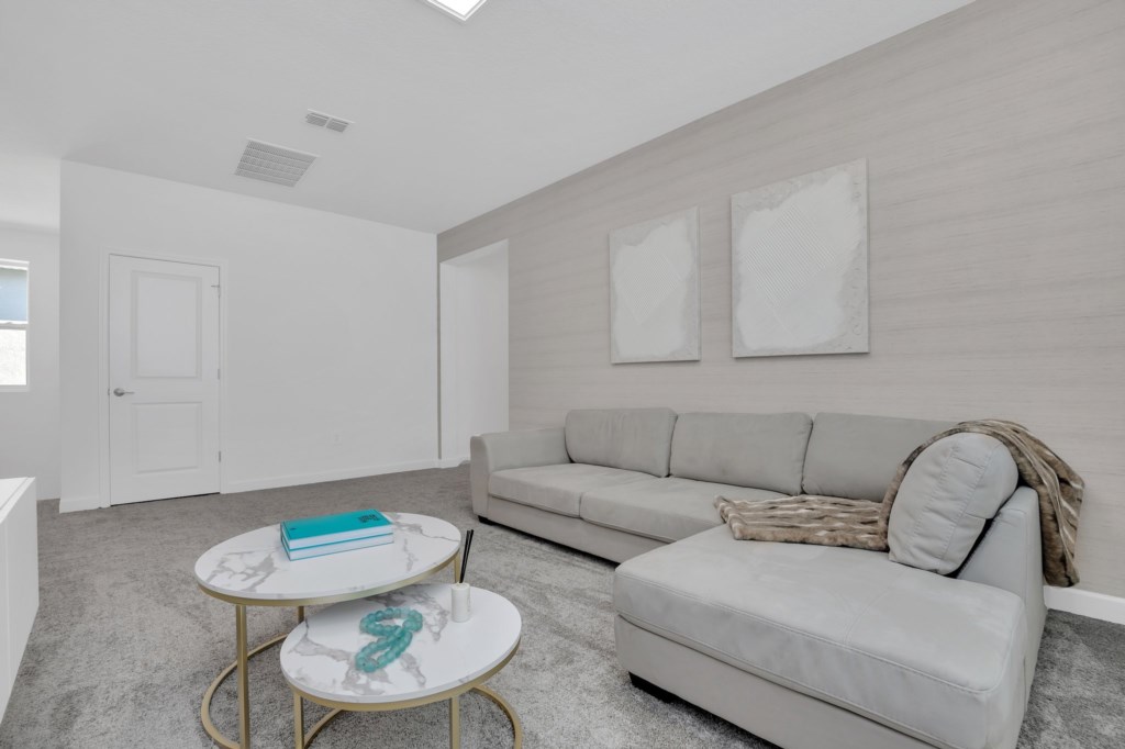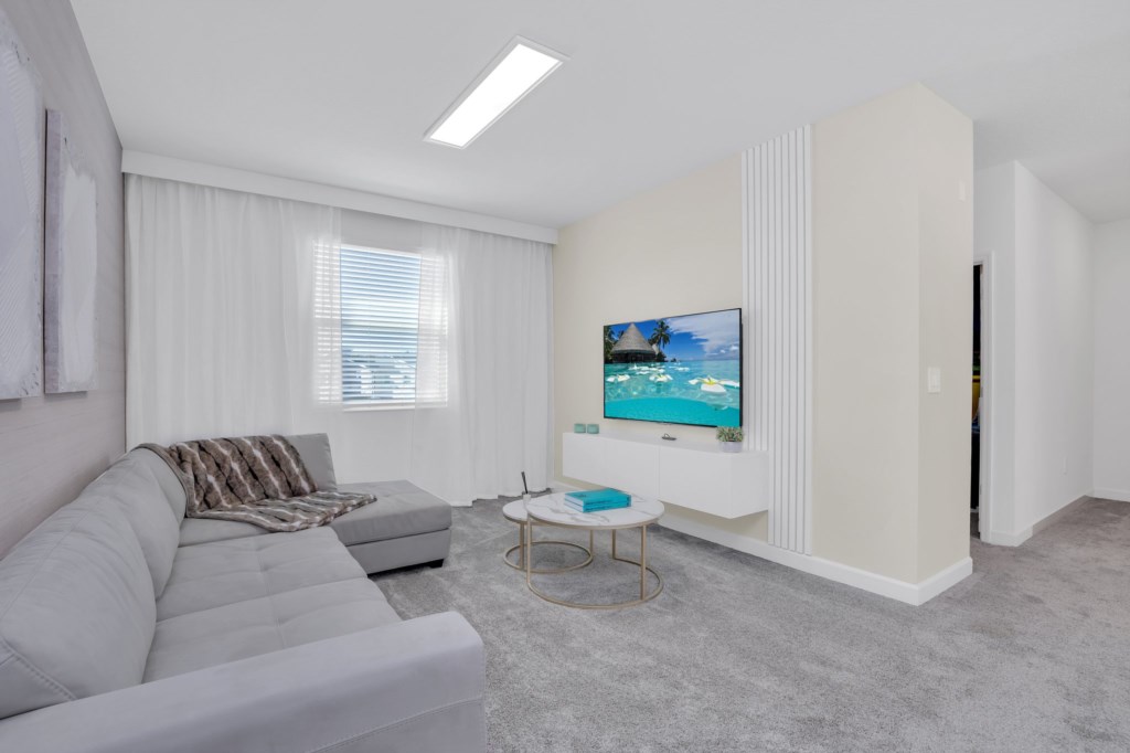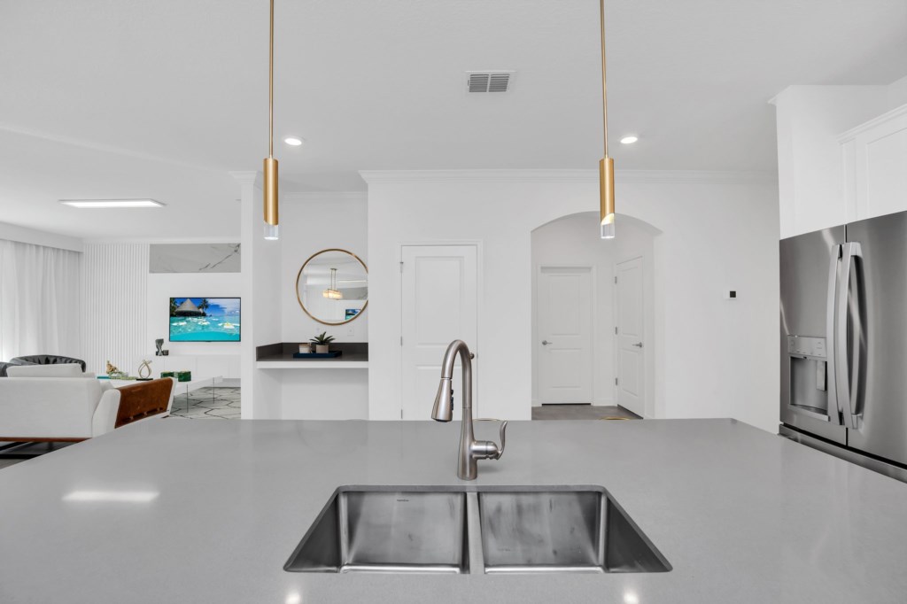 The open concept floor plan allows everyone to be together, whether you are hanging out watching your favorite show on one of the 55-inch flat screens or cooking dinner.