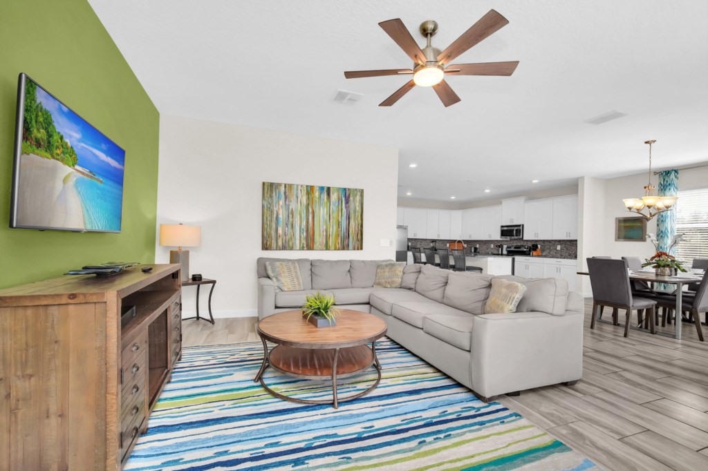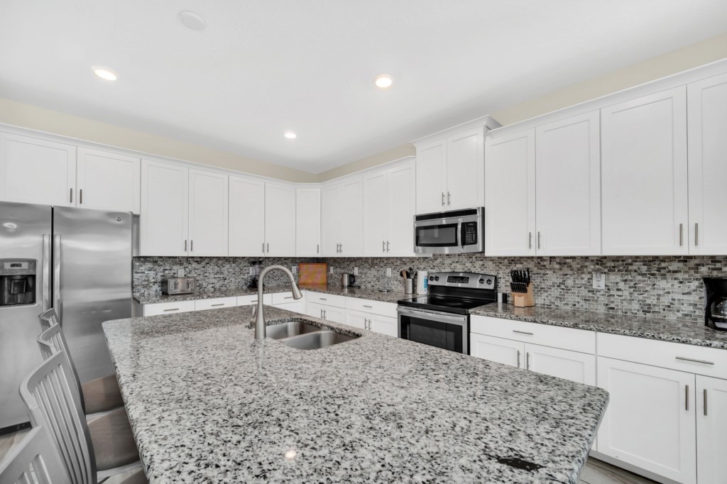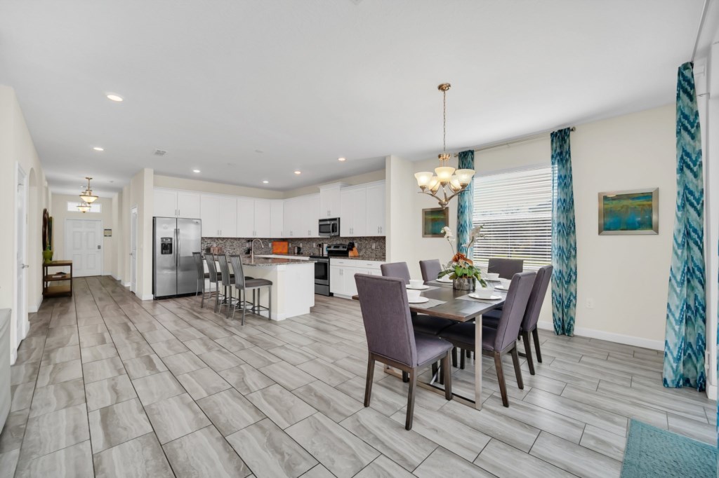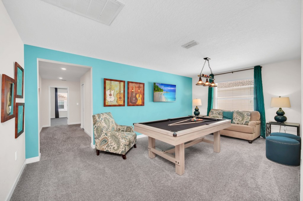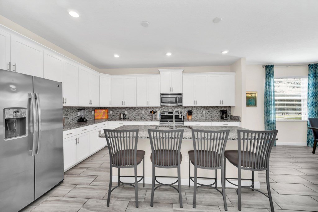 Welcome to Storey Lake Resort!! This 6 bedroom and 5 bathroom vacation rental home is located directly across the street from "The Hideaway" clubhouse amenities! The 6 bedrooms and 2 living rooms, all together with 7 LED TVs, come in handy to sleep up to 14 guests (2 king beds, 1 queen and 3 twin rooms ). The large kitchen is a chef’s dream to cook in, with upgraded cabinetry, granite countertops and black/stainless steel appliances. Take a break and cool off in your very own pool/jacuzzi and dine poolside at your leisure. For your convenience, this home includes a washer and dryer, FREE WIFI . With this dream home, a fantastic vacation awaits for your Family...