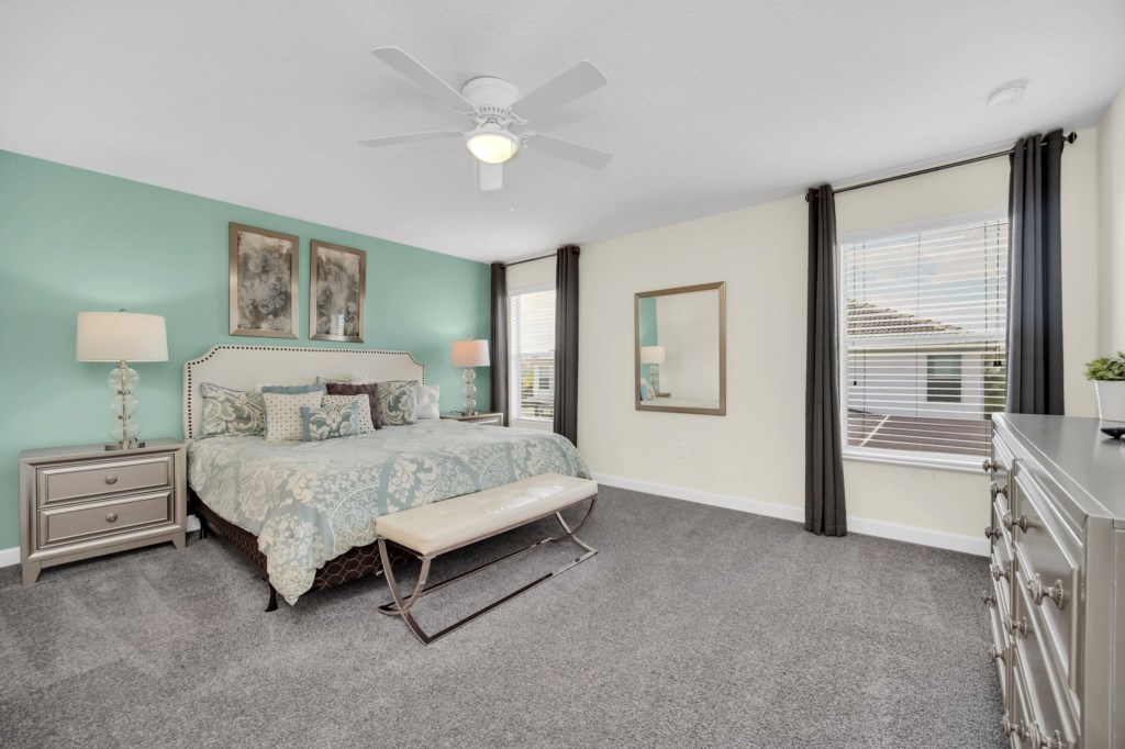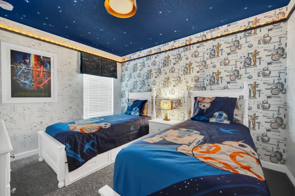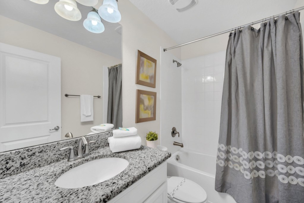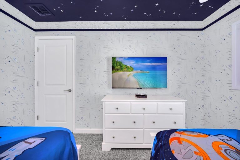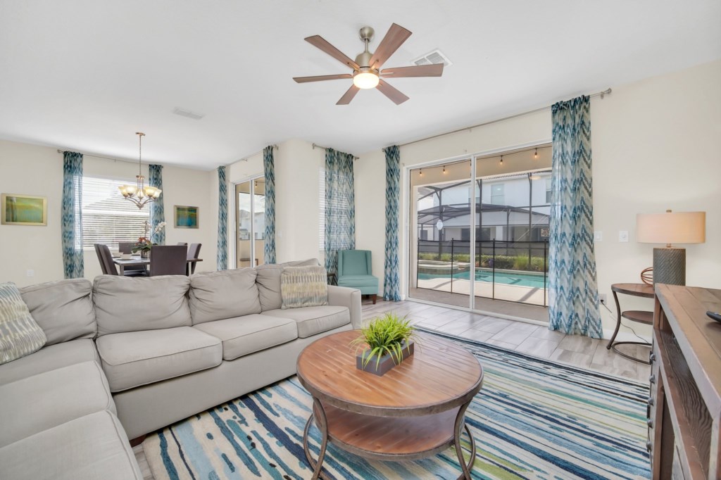 Welcome to Storey Lake Resort!! This 6 bedroom and 5 bathroom vacation rental home is located directly across the street from "The Hideaway" clubhouse amenities! The 6 bedrooms and 2 living rooms, all together with 7 LED TVs, come in handy to sleep up to 14 guests (2 king beds, 1 queen and 3 twin rooms ). The large kitchen is a chef’s dream to cook in, with upgraded cabinetry, granite countertops and black/stainless steel appliances. Take a break and cool off in your very own pool/jacuzzi and dine poolside at your leisure. For your convenience, this home includes a washer and dryer, FREE WIFI . With this dream home, a fantastic vacation awaits for your Family...