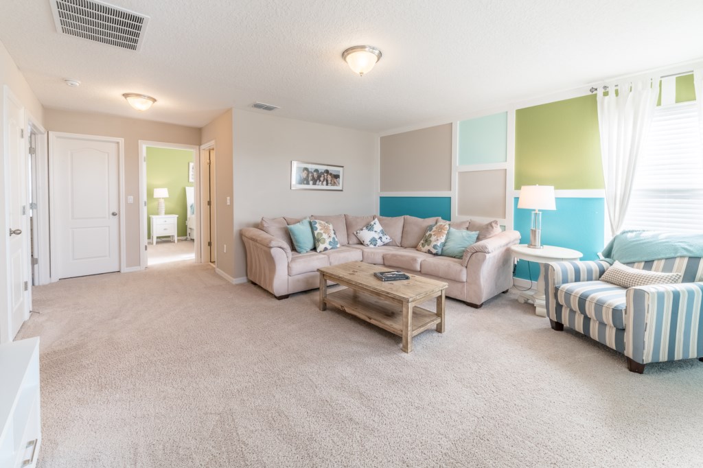 Upstairs you will find 4 additional bedroom, one of which is another master bedroom with ensuite bathroom. There is also another large bonus room with over sized sectional sofa and flat screen TV.