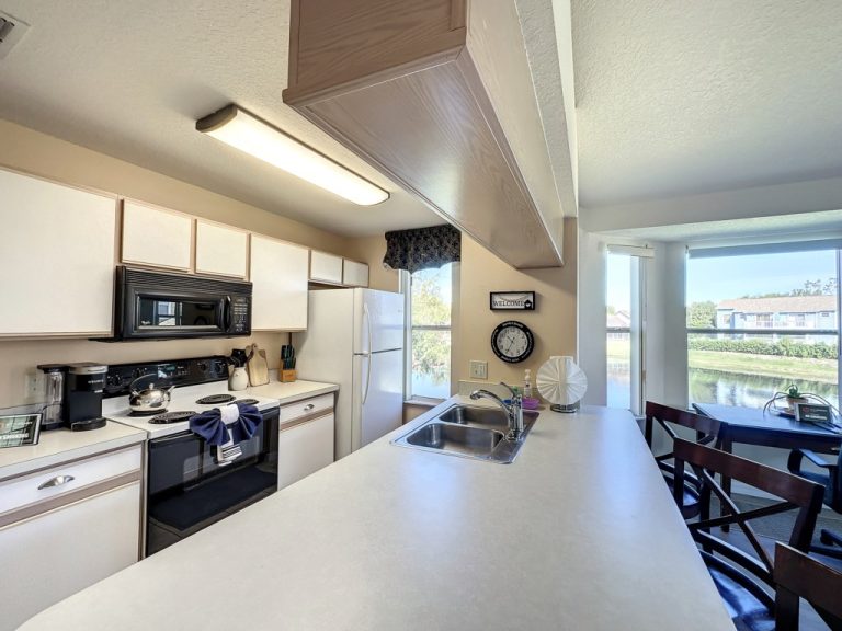 Villas at Island on-site amenities include a Clubhouse with lounge and large TV and a place to socialize, two heated swimming pools, two jacuzzi spas, fitness room, video games arcade, tennis courts, shuffleboard, sand volleyball, children’s playground with swings, jogging trails and a BBQ areas. Parking is free.