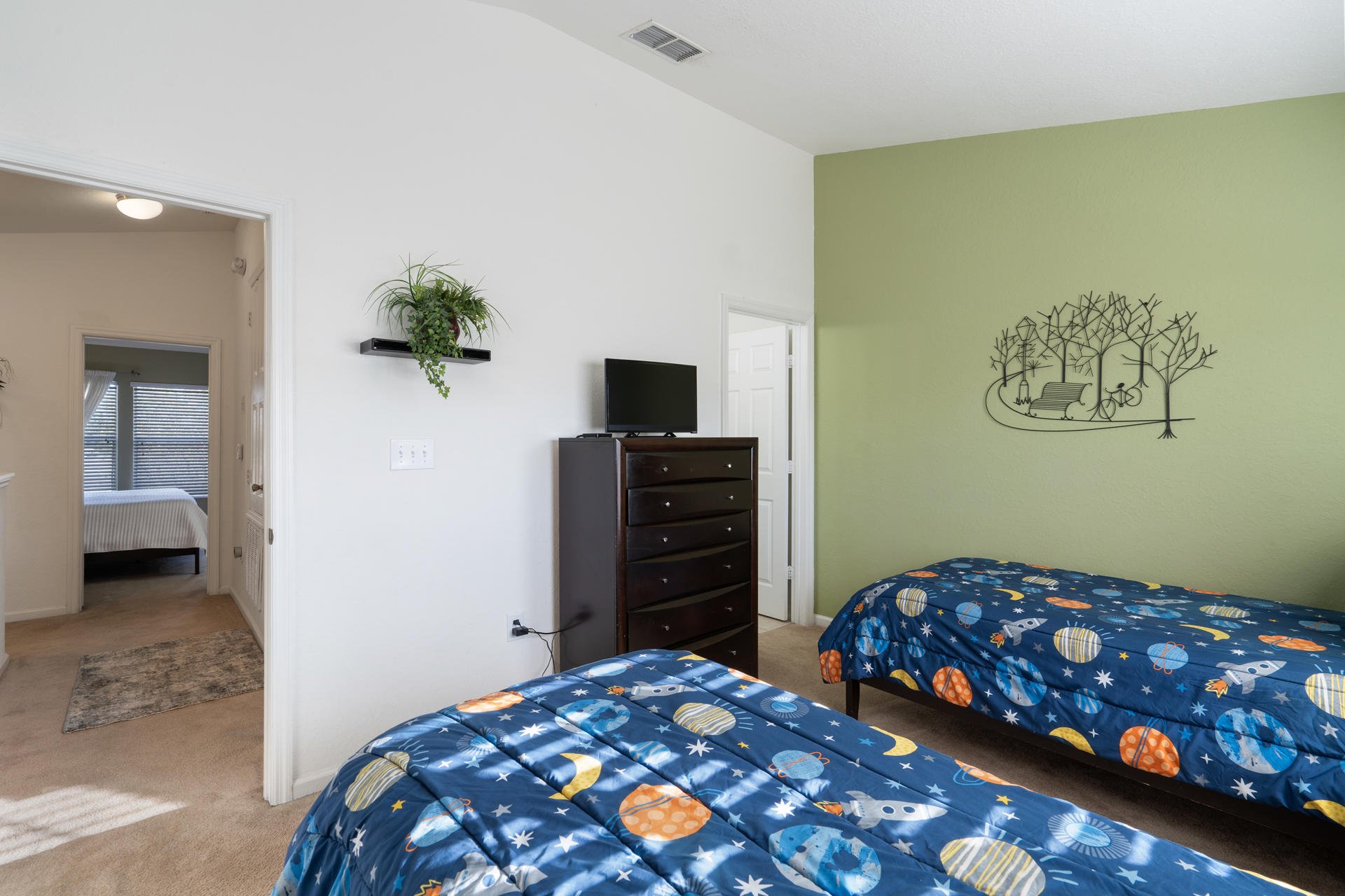 Bedroom 3: Two Twin Bedroom / Attached Bathroom / 24" Smart TV