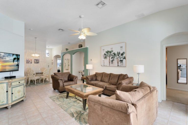 Located in WINDSOR PALMS a 5 STAR GATED RESORT COMMUNITY. Windsor Palms is a true resort community, with a 24 hour manned security gate for your safety. Our Villa is just steps away from the fabulous Windsor Palms Club House area, offering numerous resort style amenities. The resort center includes a 7500 sq ft clubhouse with modern exercise facilities, game room, arcade, a 58 seat movie theater (FREE movies daily), a sundry shop-for that fresh cup of coffee and paper in the morning. Outside you will find basketball courts, tennis courts, sand volleyball court, and a wonderful children's playground! All of these amenities are available to use at no additional charge!