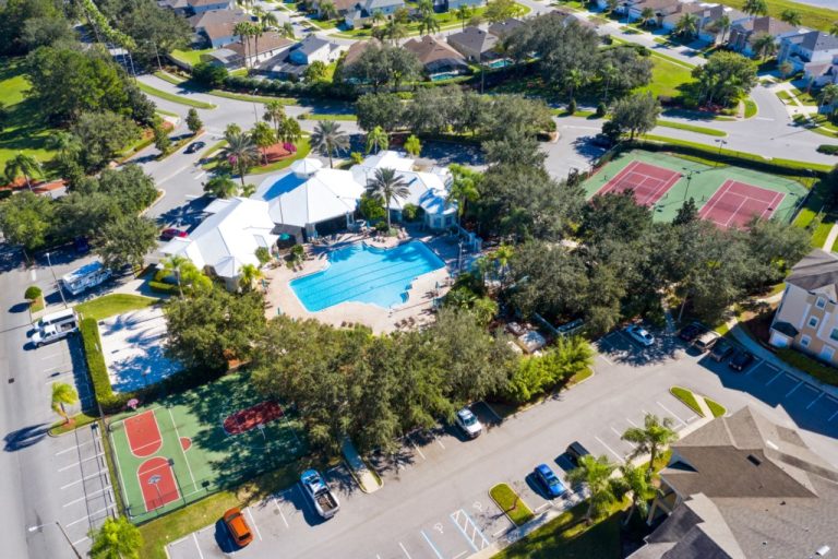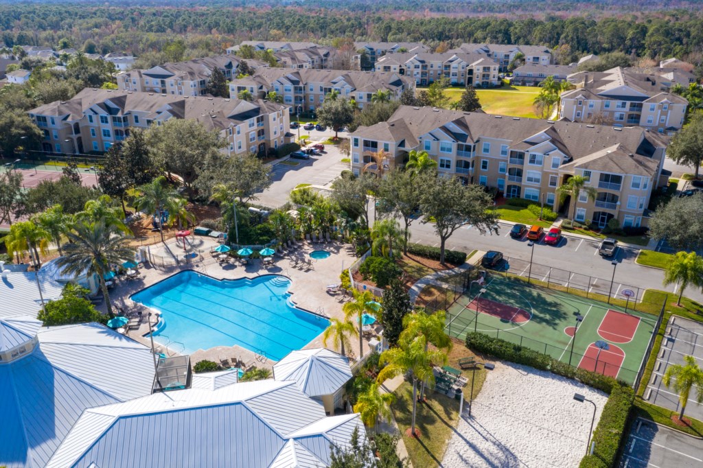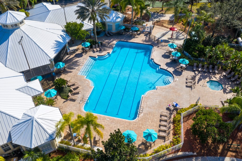 Windsor Palms Resort leisure amenities include a 7,500 sq ft Clubhouse with lounge area, large heated swimming pool and jacuzzi spa surrounded by extensive sun-decking, separate toddler pool, sundry shop, internet room, arcade games, billiards, pool tables and table tennis, fitness facility, 58 seat state of the art movie theatre, 2 lighted tennis courts, children’s playground, half-court basketball and sand volleyball court. The large resort style swimming pool (heated seasonally) is surrounded by spacious sun-decking with loungers for guests. There is a BBQ/picnic area and convenience store come gift shop with Starbucks Coffee.